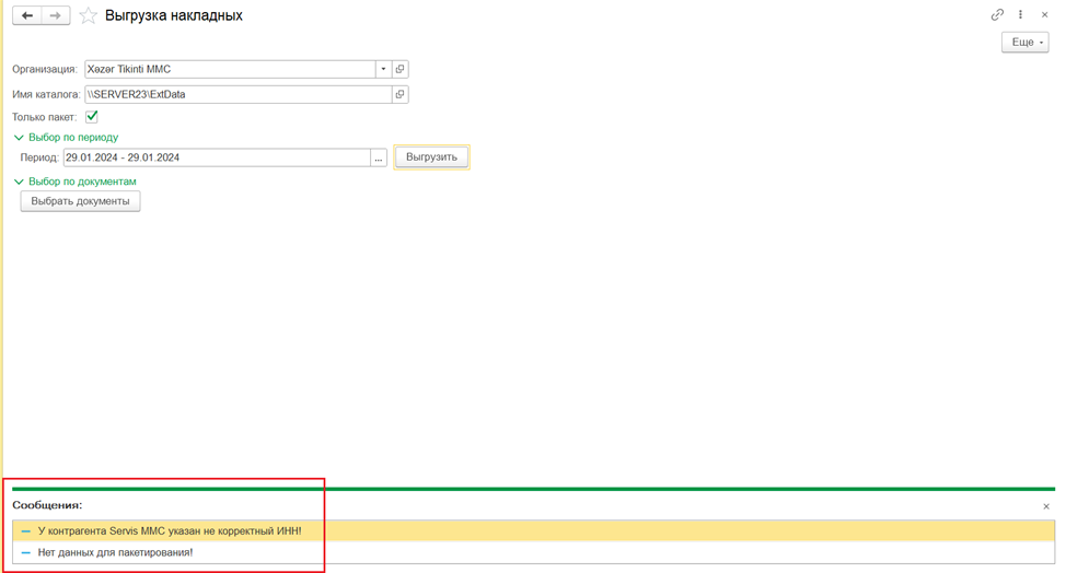 Накладные будут выгружены только при соблюдении следующих условий: